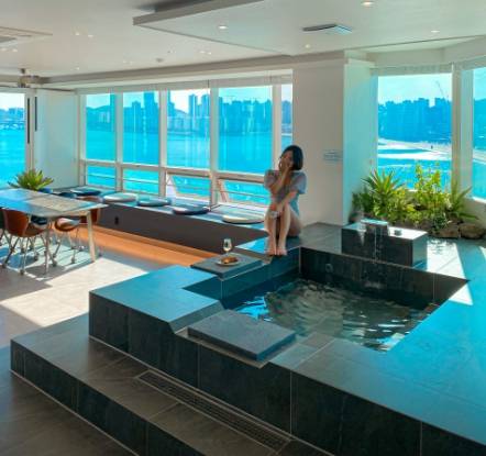 특히, 이 숙소의 자쿠지는 충분한 크기로 여러 명이 함께 이용할 수 있으며, 해변을 바라보며 반신욕을 즐길 수 있는 공간이 마련되어 있습니다.