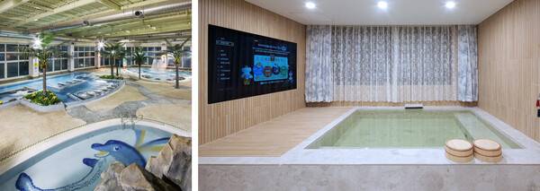 시설도 온천 가족탕, 사우나, 찜질방, 실내 온천 풀장까지 다양하게 준비되어 있어 쉬어갈 수 있습니다. 실내 풀장은 어린아이와 함께 놀기에 적합한 사이즈이며, 온갖 시설이 오래된 시설이라고 해도 꾸준한 리모델링으로 깔끔하게 사용할 수 있도록 되어있습니다.