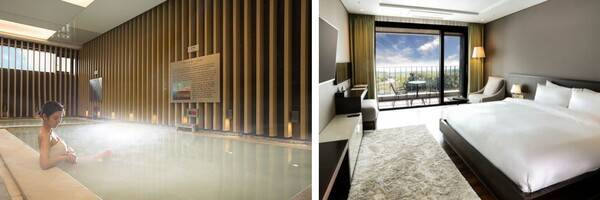 제주도 중산간 지대에 위치한 이 호텔은 자연 속에서 온천욕을 즐길 수 있는 것이 특징인데요. 국내 유일의 아라고나이트 온천을 보유하고 있는 곳이기도 합니다.