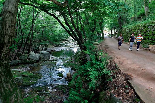 도림사계곡을 따라 이어진 숲길 산책로는 피서와 산책을 동시에 즐길 수 있는 매력 포인트예요. 도림사에서 시작해 계곡을 따라 걷다 보면 새소리와 물소리가 배경 음악처럼 들려오고, 중간중간 놓인 정자에서 쉬어가는 맛도 일품입니다.