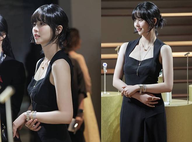 스퀘어 넥라인과 슬림하게 떨어지는 핏, 절제된 디테일이 김소현의 세련된 보디라인과 고혹적인 무드를 극대화했습니다.