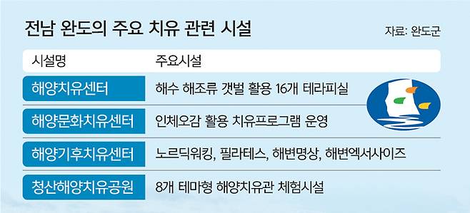 지난해 11월 개관한 완도 해양치유센터 방문객은 올해 2월 중순까지 1만5000명이 넘는다. 신 군수는 “주말에는 인터넷 예약을 하지 않으면 이용이 어려울 정도로 많은 분이 치유센터를 찾고 있다”고 전했다.
