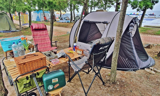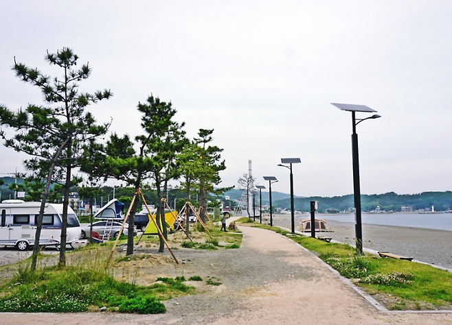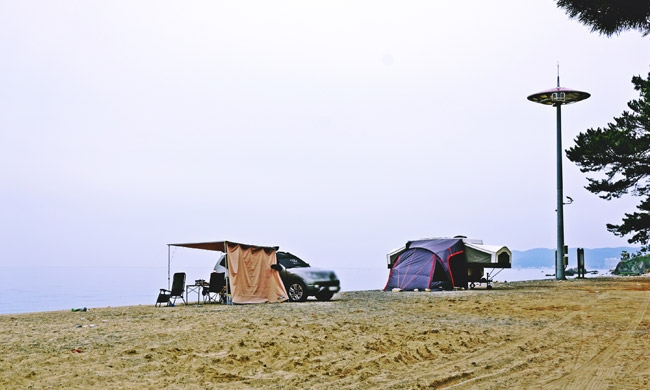 잔잔한 바다를 앞에 두고, 바람에 흔들리는 소나무 소리를 배경음악처럼 듣는 캠핑은 그 자체로 치유다. 인근에는 간단한 식사를 할 수 있는 상점가와 편의시설도 마련되어 있어 차박 초보자들에게도 부담 없는 장소다. 단, 여름 성수기에는 자릿세가 발생할 수 있으니 미리 확인해두자.