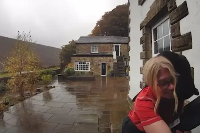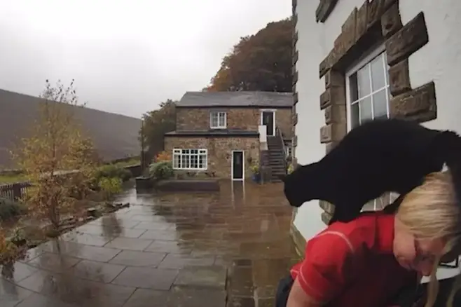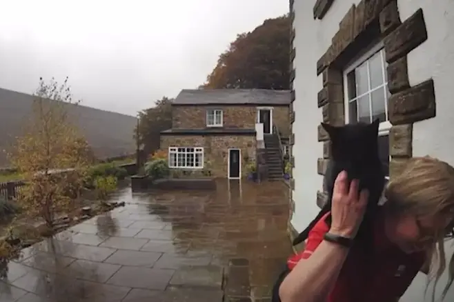 배달원은 당황하면서도 표정에 미소를 띠었습니다. 말까지 걸며 고양이와 소통하려는 모습이 영상에 담겼습니다.