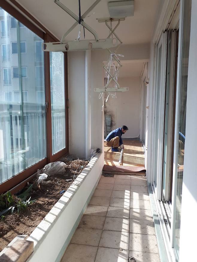 호텔 같은 단정한 느낌의 우리집 침실입니다. 안방과 바깥 공간이 확장한 발코니를 통해서만 연결되니 한층 더 프라이빗한 느낌이 들어요. 안방과 안방 확장면이 (베란다 공간) 샷시와 단차 없이 연결되어 있어서 꽤 넓은 공간처럼 느껴집니다. 대표님이 단열에 신경을 아주 아주 많이 써주셨어요.