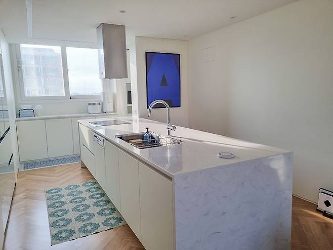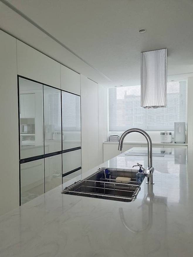 제 미니멀한 화이트 주방 어떠신가요? 저 아일랜드 조리대 위로 물건이 올라오면 좀 너저분해 보인다는 치명적인 단점이 있지만, 부지런히 치우게 되네요.;; 웃는 게 웃는 게 아니죠. ㅎㅎ 그래도 제가 갖고 싶던 아일랜드라 후회는 없어요. 최적의 동선과 심플한 형태, 개방감을 중요시하는 분에게 적극 추천하는 주방 레이아웃입니다.