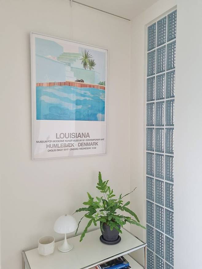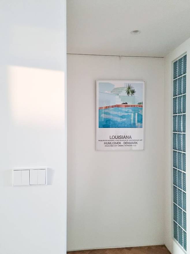 저는 욕실에다 액자를 뒀어요. 노랑 색상이 공간에 생동감을 더해줘요. 십 년 넘게 함께 한 포스터 액자인데 이사 오면서 화이트 알루미늄 재질로 액자만 새로 교체했더니 그냥 새 액자가 됐어요. 낡은 액자만 바꿔줘도 다시 잘 쓸 수 있어요.