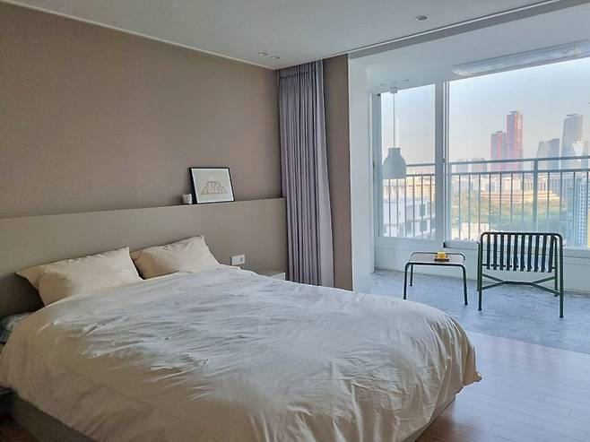 안방 앞쪽으로 여의도뷰에요. 국회의사당, 트윈타워, 파크원, IFC 몰이 보이는데 낮에 보이는 뷰도, 나이트 뷰도 꽤 괜찮아요.