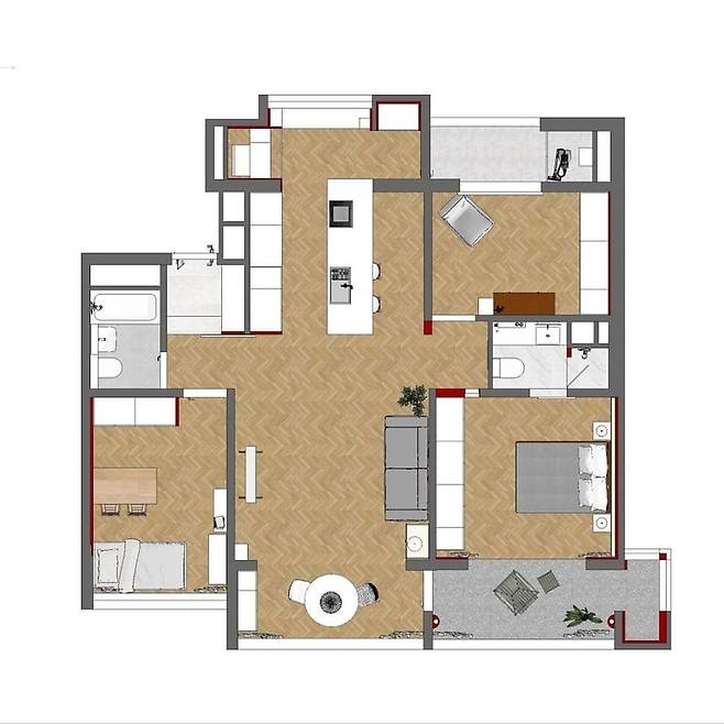 제가 최종적으로 선택한 레이아웃 3D 도면 같이 보여드릴게요.