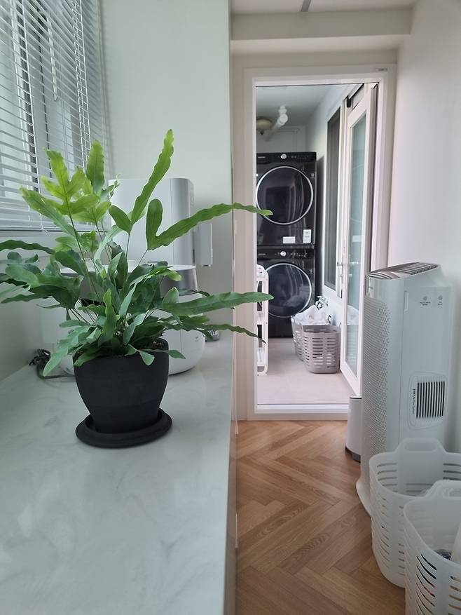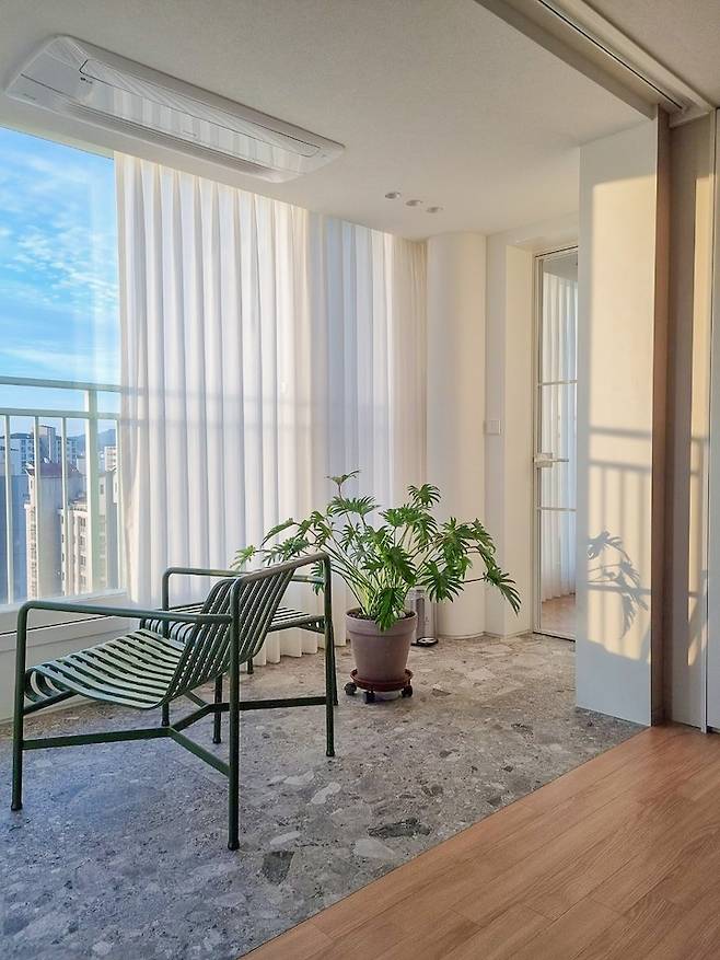 지금의 우리 집을 구경하는데 앞이 시원하게 트여있어서 마음 속으로 쾌재를 외쳤답니다. 도로 바로 앞에 있는 집이라 소음이 크고 먼지가 많은 단점이 있지만 그런 것들은 조금도 거슬리지 않았어요. 그래서 빛의 속도로 집을 계약했답니다. 그리고 관사에 살면서 세입자를 받으며 지내다, 아이가 초등학교 입학을 앞두고 있어 이사를 하게 되었습니다. 매달 받은 월세를 꾸준히 모은 덕분에 제 취향을 담은 인테리어를 할 수 있게 됐어요.