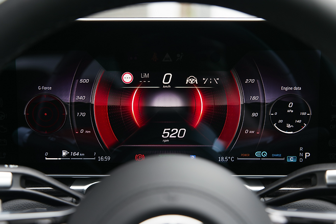 실내는 블랙 나파 가죽으로 마감된 스포츠 스티어링 휠과 시트, AMG 플로어 매트로 고급스러움과 스포티함을 동시에 표현했습니다. 또한 3D 계기판은 직관적인 정보를 제공해 주행 안정성을 높여줍니다.