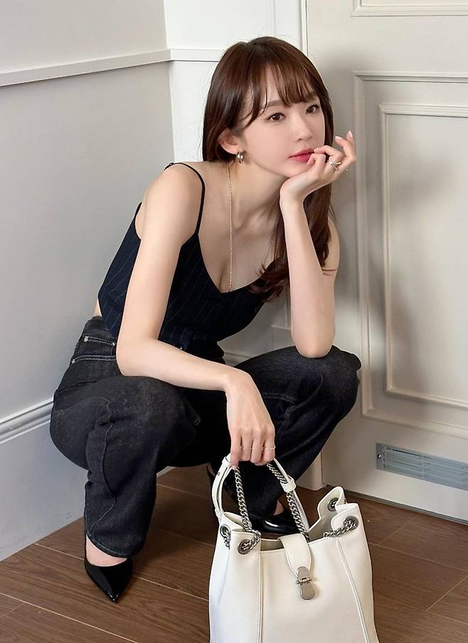 그룹 다비치의 강민경이 가방과 머리, 메이크업까지 모든게 좋은 날 탱크톱 데일리룩으로 동안 미모를 과시했다.
