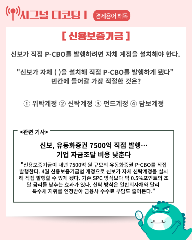 ▶ 기사 바로가기: 신보, 유동화증권 7500억 직접 발행···기업 자금조달 비용 낮춘다