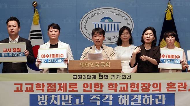 ▲ 지난 5일 여의도 국회 소통관엣 진행된 3대 교원단체, 고교학점제 전면 개선 요구 기자회견