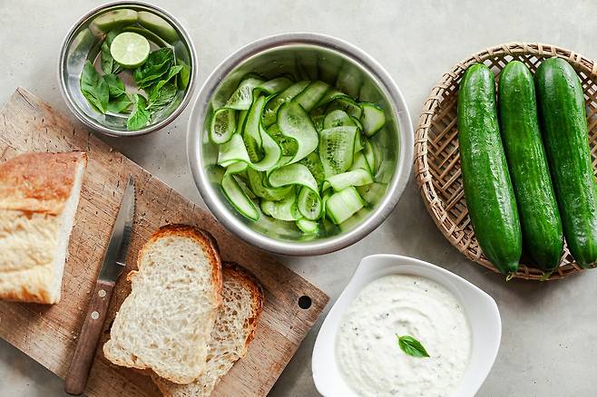 - 만드는 법 : 오이를 얇게 썰고, 식빵에 크림치즈를 바른 후 오이를 얹어 샌드위치를 만들면 상큼하고 간단한 간식이 돼요.