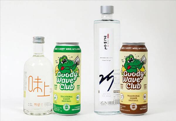 농심은 국가무형유산 전통주 문배주를 활용한 하이볼 ‘구디웨이브클럽 전통주 하이볼 배맛’과 제주 감귤 증류주 미상을 활용한 ‘구디웨이브클럽 청귤하이볼’을 GS25 편의점을 통해 선보였다. 배맛 제품은 조, 수수 등 곡물을 활용해 빚지만 배 향을 내는 문배주의 독특한 특성에 맞춰 국산 배 농축액을 더했다. 청귤맛은 100% 제주 감귤을 발효해 만든 증류주 미상에 제주산 청귤 농축액과 탄산을 더해 상쾌한 향을 담았다. 가격은 캔당 4,500원이다.