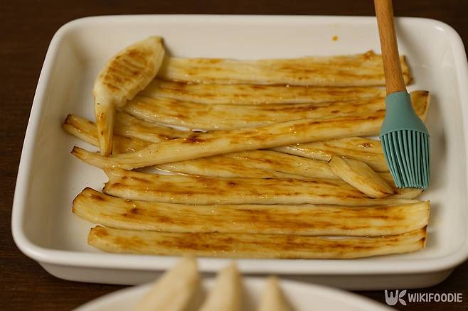 4. 더덕에 유장을 고루 바르고 30분간 둔다.