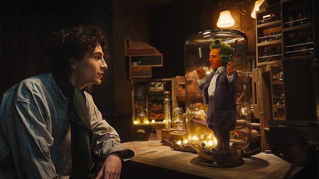 윌리 웡카 역을 맡은 티모시 샬라메는 영화의 시작과 끝이다. 매력적인 배우가 한 편의 대작을 얼마나 흥미진진하게 이끌 수 있는지를 몸소 증명한다.