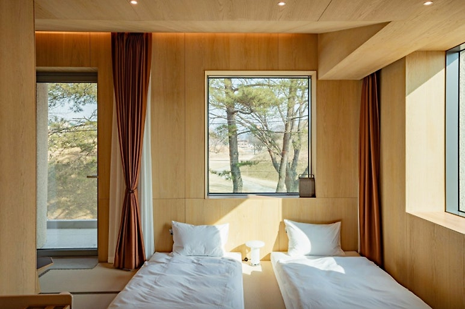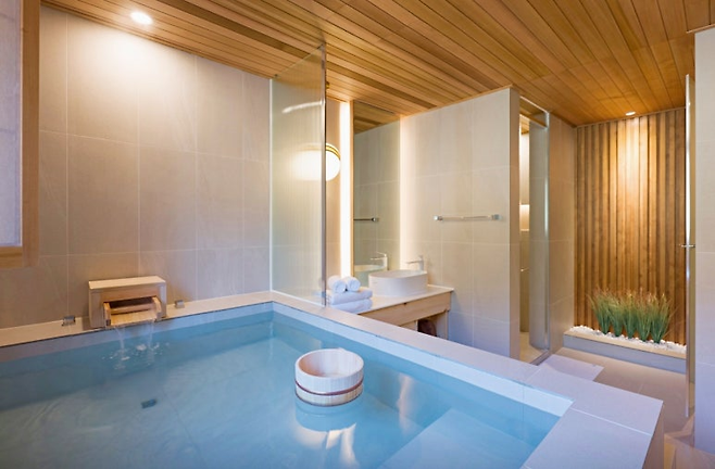 이 호텔의 자쿠지는 넉넉한 크기와 깊이를 자랑한다. 물을 가득 채워 반신욕을 즐기다가, 창문을 열면 마치 노천탕에 온 듯한 기분까지 만끽할 수 있다. 차가운 공기와 따뜻한 욕조의 온도가 조화를 이루며, 머무는 내내 이색적인 휴식이 이어진다. 객실은 우드 톤으로 꾸며져 아늑함을 더했고, 바닥난방과 온풍기가 함께 작동되어 추운 계절에도 숙소 안이 늘 쾌적하다.