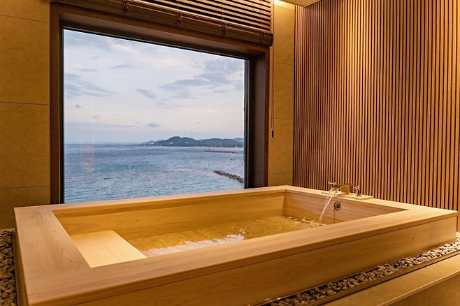 영덕군 남정면 부경항 인근에 위치한 이곳의 가장 큰 매력은 히노끼탕 자쿠지가 마련된 객실이 있다는 점이다. 오션뷰 창문 너머로 물빛을 감상하며 따뜻한 탕에 몸을 담그면, 겨울철에도 쾌적하고 아늑한 시간을 누릴 수 있다. 나무 특유의 향긋함이 스며있는 히노끼탕에서 바라보는 새벽의 일출은 이 호텔만의 특별한 감동을 선사한다.