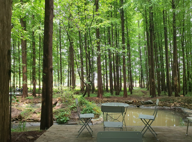 울창한 메타세콰이어 숲 속에 위치한 힐링 카페
