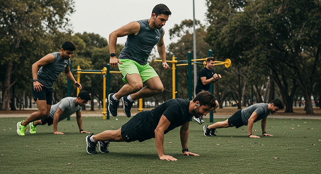 과도한 무게 없이 맨몸만으로도 강한 자극을 주며, 칼로리 소모와 근력 강화가 동시에 이루어집니다.
