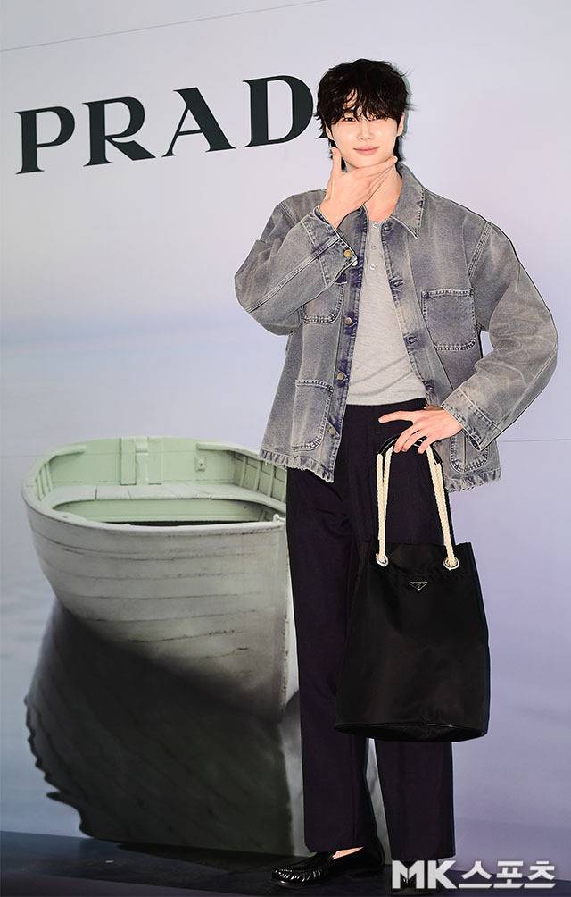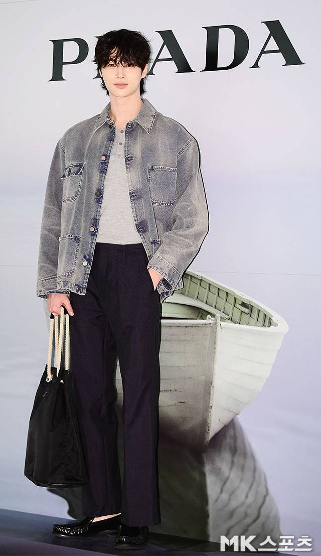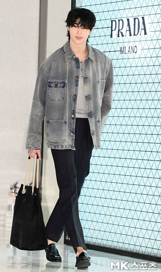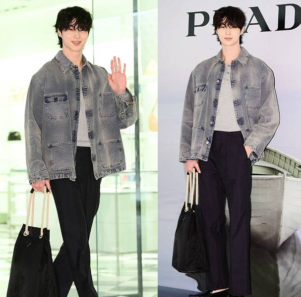 변우석이 워싱감이 살아있는 빈티지한 청재킷에 심플한 그레이 티셔츠, 그리고 여유로운 핏의 블랙 슬랙스를 매치해 ‘꾸안꾸’ 무드를 완성했습니다.