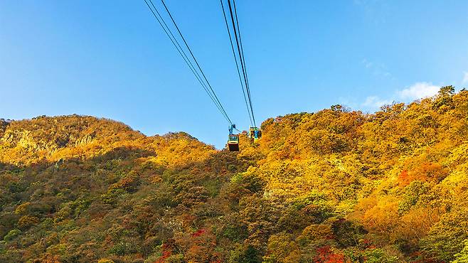 선홍빛으로 물든 단풍 터널, 기암괴석과 폭포가 어우러진 절경은 단순한 교통수단을 넘어선 하나의 경험이다.