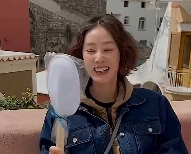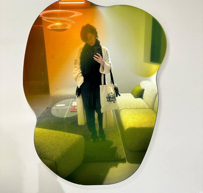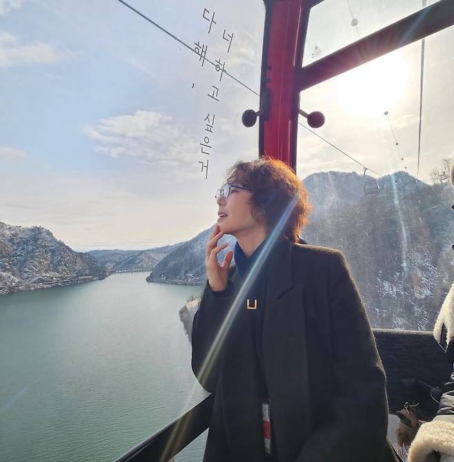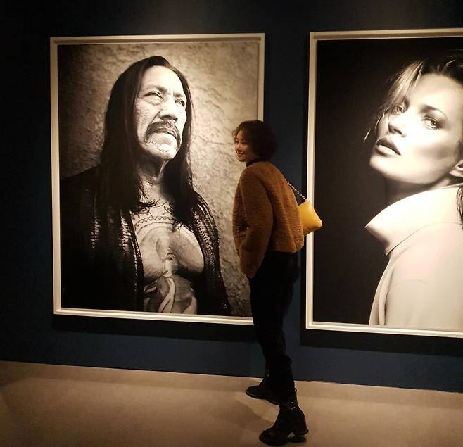 50대 후반이라고는 믿을 수 없는 동안 미모인데요~ 발랄한 포즈로 매력을 더했습니다. '아기사자'처럼 곱슬머리는 헤어스타일이 미스코리아 진 시절을 연상케 하는 듯해요.