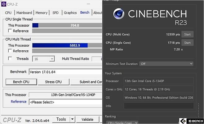 우선 CPU 성능을 알 수 있는 CPU-Z, CineBenchR23을 구동시켜보았다.