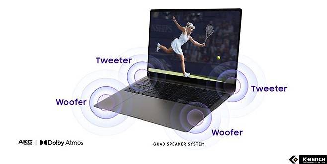 전세대 갤럭시북 제품군들도 돌비 애트모스 및 AKG 튜닝 등을 지원할정도로 노트북 사운드에 신경을 쓰고 있었는데, 이번 삼성전자 갤럭시북3 시리즈 및 이번 삼성전자 갤럭시북3 프로 NT960XFT-A51A 모델에서 한층 더욱 업그레이드된 사운드를 즐길 수 있다.