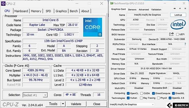 인텔 코어 i5-1340P는 12개의 코어를 가지고 있고 4개의 퍼포먼스 코어민 8개의 효율 코어로 구성되어 있다. 총 스레드는 16스레드를 지원한다. 전세대 엘더레이크 대비 코어와 스레드 구성은 동일하다.
