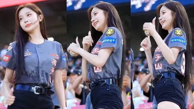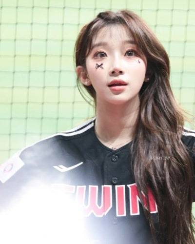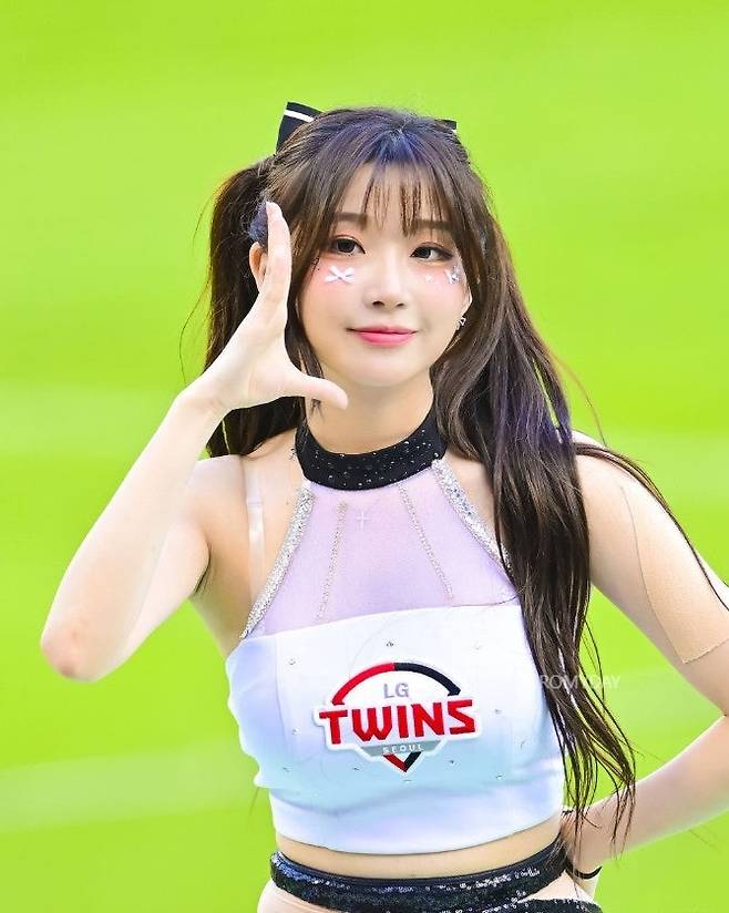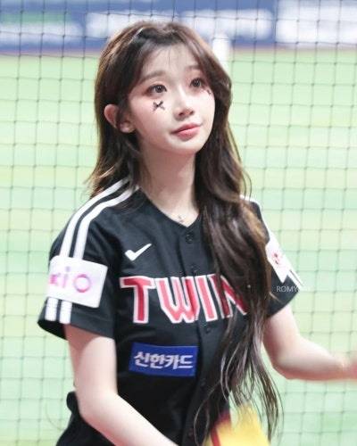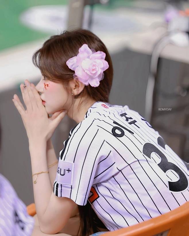 그리고 이주은 하면 빼놓을 수 없는 게 바로 LG 트윈스 유니폼 패션이죠. 화이트 유니폼에 글리터 디테일이 더해진 크롭 탑, 시퀸 하이웨이스트 팬츠, 그리고 포인트가 되는 블랙 리본 헤어핀까지! 응원할 때의 생동감과 함께 스타일링 센스까지 느껴집니다.