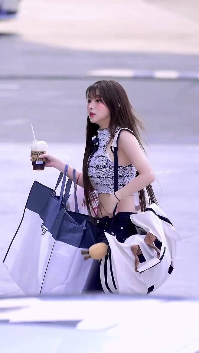 눈에 띄는 실루엣과 꾸안꾸 느낌이 완벽히 어우러진 출근길 사복 패션! 블랙 앤 화이트 배색 니트 민소매 탑에 로우라이즈 생지 데님을 매치하고, 큼직한 쇼퍼백과 캔버스백을 양손 가득 들고 있는 모습이 인상적이었어요. 손에는 테이크아웃 커피, 당당한 눈빛까지 더해지면서 단순한 출근길이 런웨이처럼 느껴질 정도였죠.