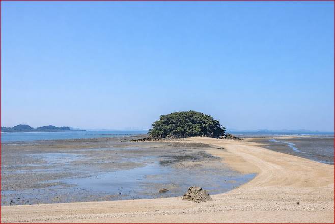 겨울의 투명한 하늘 아래에서 샛노란 모랫길을 따라 섬으로 들어갔다가, 바다가 다시 자리를 채우기 전에 돌아오는 짧은 산책. 오래 머물지 않아도, 이 장면은 유난히 오래 남습니다.