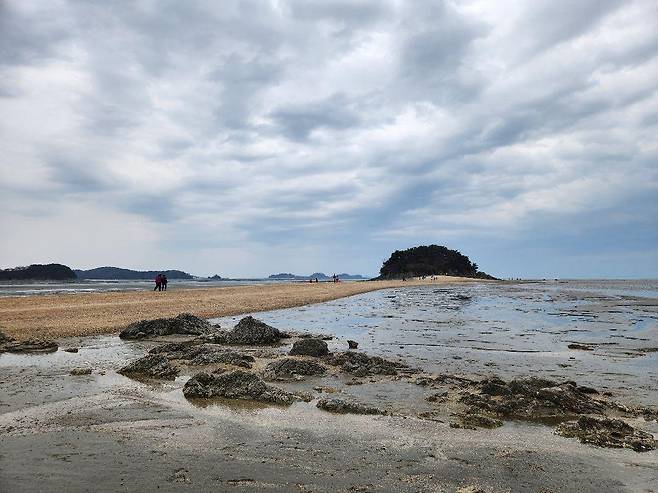 서해의 바닷길은 갯벌이 질척이는 경우가 많은데, 목섬으로 이어지는 길은 비교적 단단한 모래와 자갈이 섞인 형태라 발이 깊이 빠지지 않습니다. 그래서 장화 없이도 운동화 차림으로 조심스럽게 이동이 가능하고, 길 중앙에 서면 양옆으로 물이 차오르는 풍경을 안정적으로 바라볼 수 있습니다.