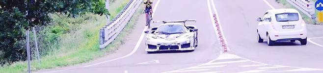 이탈리아 마르넬로에 위치한 페라리 공장 부근에서 위장막 덮인 신형 자동차의 주행 모습이 포착됐다.