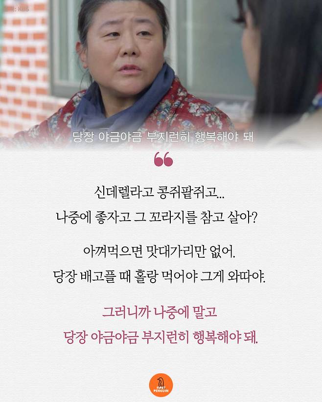 F들 눈물 펑펑 흘리는 인생 명대사 1위 “당장 야금야금 부지런히 행복을...”