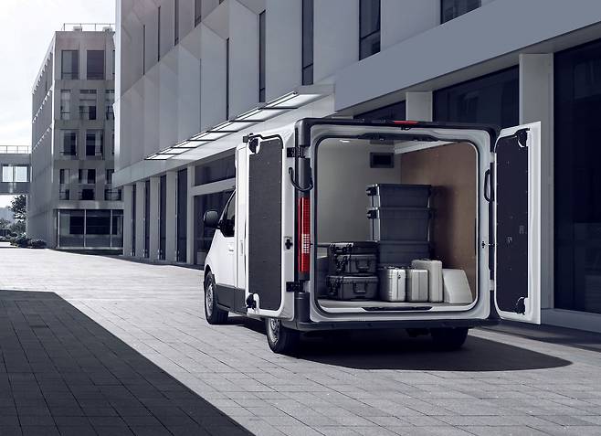 적재함 측면에는 슬라이딩 도어를, 후면에는 개방감을 최대화한 트윈 스윙 도어를 적용했다. 또한, 측면과 후면 도어에 모두 전동식 잠김 시스템을 반영해 걸쇠 형태가 아닌 승용차의 도어처럼 전동으로 적재함 도어를 열고 잠글 수 있게 했다.