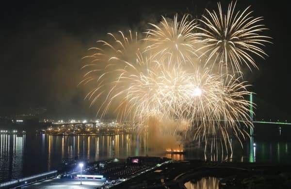 K-POP 콘서트가 끝난 뒤에는 부산항대교를 배경으로 한 대규모 불꽃쇼가 이어져요. 수만 발의 불꽃이 밤하늘을 수놓으면서, 부산항의 야경과 어우러져 환상적인 장관을 연출합니다.