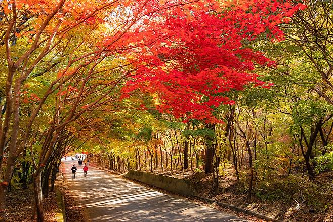 가을에는 산 전체가 울긋불긋한 단풍으로 물들어 자연 속에서 여유로운 시간을 보내기에 좋습니다.