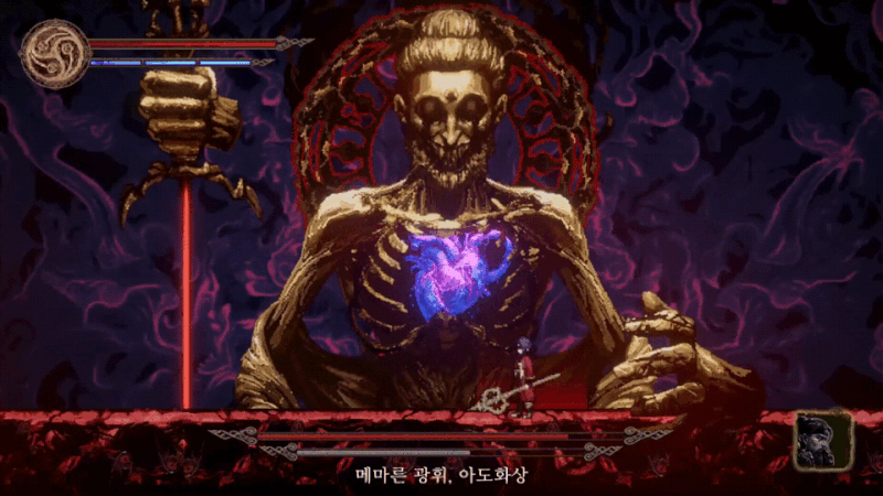 이번 플레이엑스포에서 만난 길드스튜디오의 '남모' 역시 그러한 게임 중 하나라고 할 수 있다. 신라를 배경으로 한 다크 판타지 액션 게임. 최근 한국 게임 업계가 주목하고 있는 조선이 아닌 신라를 배경으로 한다는 점도 여러모로 흥미로웠지만, 진짜는 따로 있었다. 횡스크롤 패링 액션을 더욱 확장하는 요소인 '영안(靈眼)'과 게임의 비주얼이 그 주인공이다.