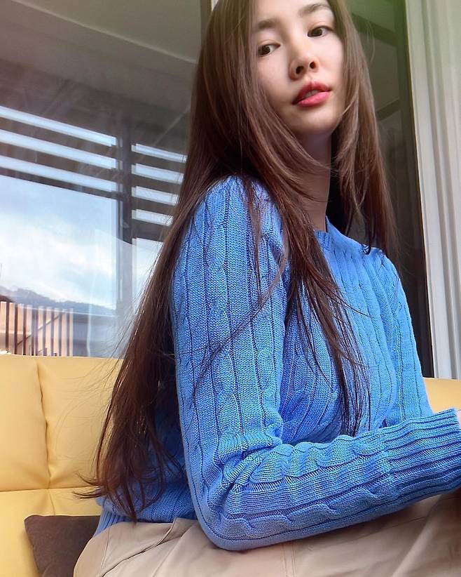 또, 긴 생머리로 차분하고 우아한 분위기를 연출했습니다.