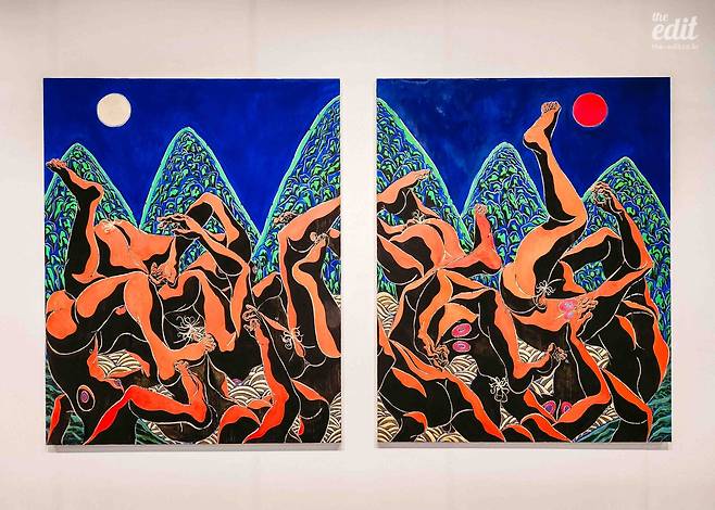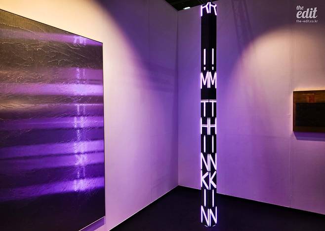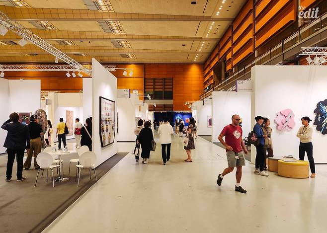 해외 갤러리들이 정말 똑똑하더라. 작년에 장사하고 상황 파악이 끝났는지 올해는 엄청 비싼 작품 말고 20억 원 아래의 작품들을 많이 가지고 왔어. 물론 20억 원도 엄청 비싸긴 한데, 작년에는 50억 원, 100억 원 넘는 작품도 있었거든. 5~20억 원 예산 내에서 고민할 만한 인기 작가 작품을 끌어와서 매출 급하락도 막고 효과적으로 세일즈를 끌어가더라고. 보는 입장에서는 스펙터클한 대작이 없어서 아쉬웠지만 친근한 작품들이 보이니까 오히려 마음 편하게 즐길 수 있었어. 아, 그리고 인터내셔널 느낌도 여전했어. 영어, 일본어, 중국어를 비롯한 외국어와 한국어가 곳곳에서 겹쳐 들리는데 서울에서 열린 그 어떤 행사보다 이국적이었어. 작년에 인기 좋은 프리즈 마스터스를 확장한 덕분에 몇몇 부스에는 사람들이 미친 듯이 줄 서는 장관도 반복됐지.