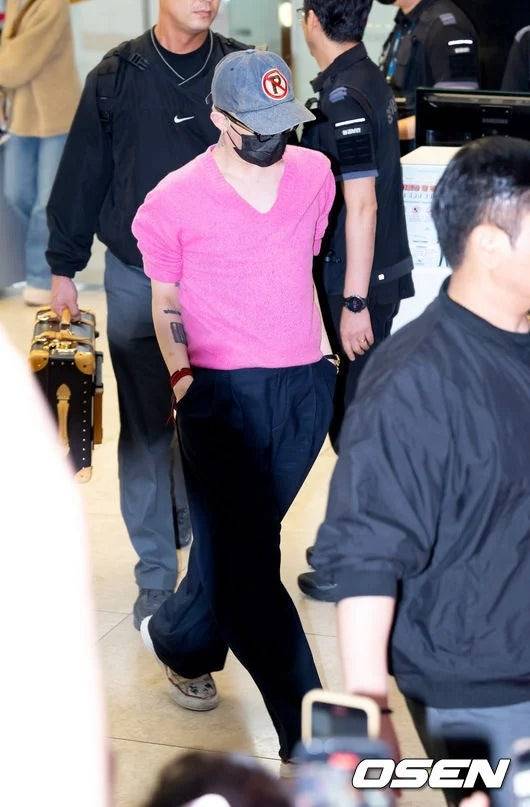 지디 어깨, 공항을 런웨이로 만들다! 직각 어깨 + 핫핑크 패션 화제