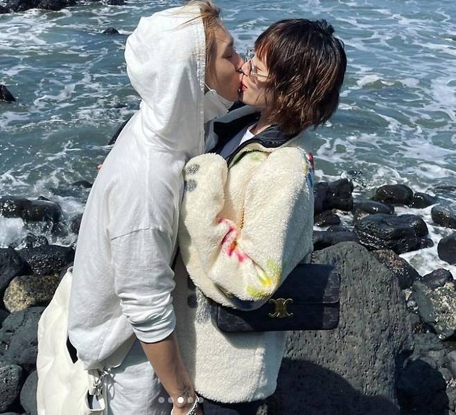 공개된 사진 속에는 서로 어깨와 허리를 감싸고 서로 입맞춤 중인 현아와 던의 모습이 담겼습니다. 바닷가를 배경으로 서로를 향한 애정과 알콩달콩한 분위기를 보여준 두 사람의 모습에 팬들은 “귀여운 커플”, “언니 너무 예뻐요”, “현아님 제주도인가요” 등 다양한 반응을 보였습니다.
