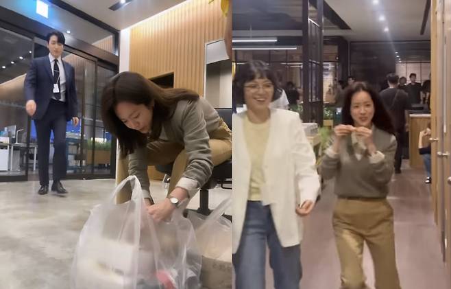 영상에서 한지민은 촬영장에 치킨이 배달되자 급하게 봉투를 뜯었다. 그 순간 이준혁이 나타나 "어허"라며 한지민을 제지하려고 했다.