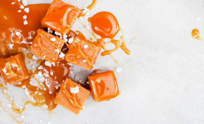 캐러멜은 달콤함과 쫀득함이 매력적이지만, 치아 건강에는 그다지 반갑지 않은 간식입니다. 캐러멜은 끈적거려서 치아 표면이나 사이에 오래 머무르기 쉽습니다. 이렇게 오랫동안 치아에 남아 있는 당분은 충치균의 먹잇감이 되고, 결국 충치 발생 위험을 높입니다. 특히 아이들이 좋아하는 캐러멜 사탕이나 캐러멜이 들어간 초콜릿, 디저트 등은 먹은 뒤 바로 양치질을 하거나 물로 헹궈주는 것이 좋습니다.