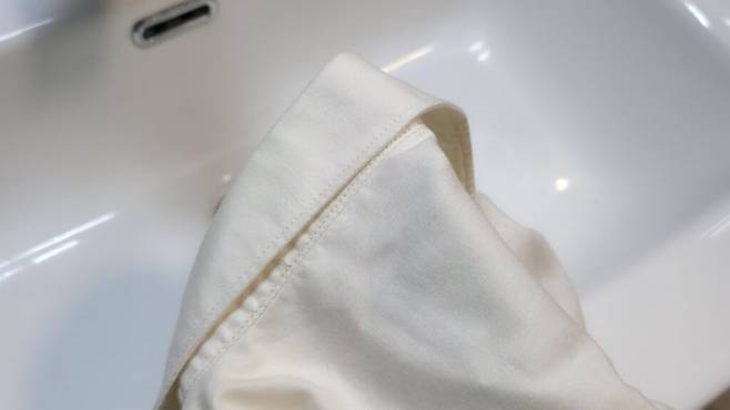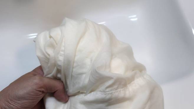 이대로 약 5분 정도 담가 줍니다. 그러면 노랗게 변색된 옷에서 물이 빠져 다시 하얗게 변하게 됩니다. 이후 세탁기에 세제와 함께 일반 세탁을 한 후 건조해 주세요.