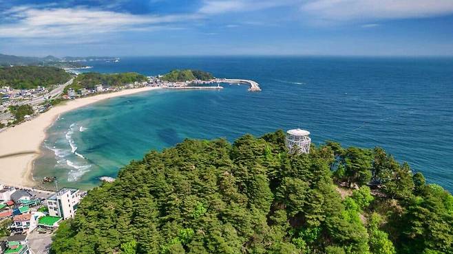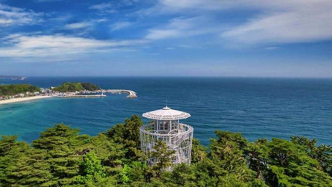 정자에서 조금만 더 올라가면 모습을 드러내는 곳이 바로 죽도 전망대다. 새하얀 구조물이 인상적인 이 전망대는 나선형 계단을 따라 원형으로 상승하는 구조로, 마지막까지 발을 디딘 이들에게는 탁 트인 동해가 시야 가득 펼쳐진다.